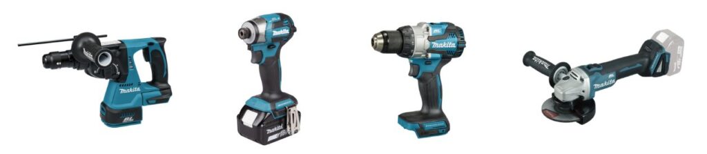 Este kit incorpora 4 herramientas LXT 18V con motor Brushless: amoladora 125 mm (DGA504), taladro combinado (DHP489), martillo SDS-PLUS (DHR243) y atornillador de impacto (DTD173).